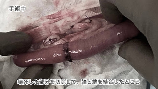 腸が壊死している部分がある場合は、壊死した部分の腸も切除し、縫い合わせることが必要です。